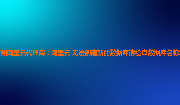 广州阿里云代理商:阿里云无法创建新的数据库,请检查数据库名称填写是否正确 在使用阿里云的数据库服务时,用户有时可能会遇到“无法创建新的数据库,请检查数据库名称填写是否正确”的错误提示。这类问题通常是由