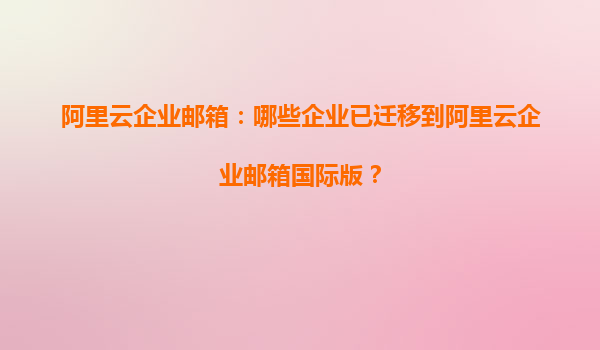 阿里云企业邮箱:哪些企业已迁移到阿里云企业邮箱国际版? 引言 在数字化转型加速的今天,企业邮箱作为内外沟通的重要工具,其稳定性和安全性直接关系到企业的运营效率。阿里云企业邮箱国际