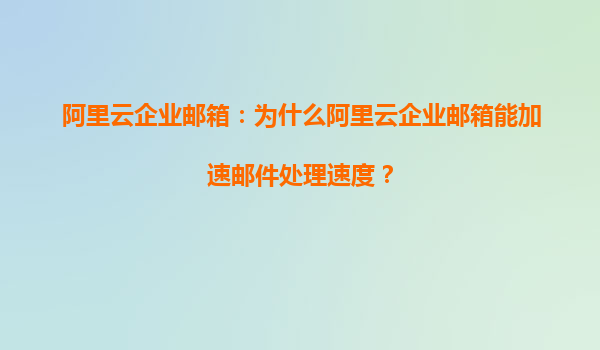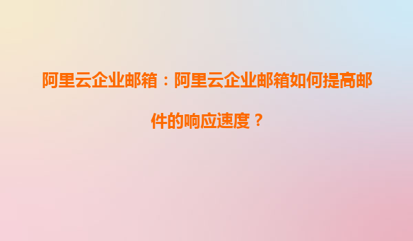阿里云企业邮箱如何提高邮件的响应速度? 随着信息时代的到来,电子邮件已经成为了企业内部与外部沟通的主要方式之一。邮件的响应速度直接影响到企业的工作效率与沟通质量。而阿里云企业邮箱,作为国内知名的云邮件