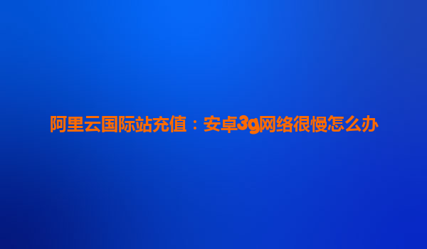 阿里云国际站充值:安卓3G网络很慢怎么办? 如今,云计算已经成为企业、开发者以及各类个人用户的得力助手,而阿里云作为全球领先的云服务提供商,凭借强大的技术支持和优质的服务,赢得了世界各地用户的信赖。阿