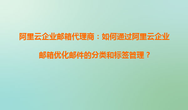 阿里云企业邮箱代理商:如何通过阿里云企业邮箱优化邮件的分类和标签管理? 一、邮件管理在现代企业中的重要性 在数字化办公时代,邮件仍然是企业沟通的核心工具之一。随着业务量的增长