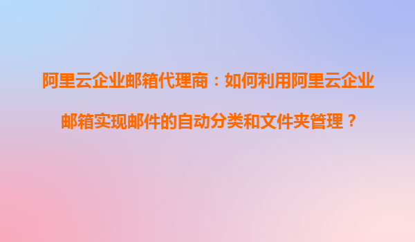 阿里云企业邮箱代理商:如何利用阿里云企业邮箱实现邮件的自动分类和文件夹管理? 一、阿里云企业邮箱的优势 阿里云企业邮箱作为国内领先的企业级邮件服务提供商,凭借其强大的功能、稳定性和安全性,