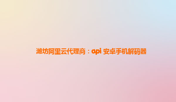 潍坊阿里云代理商:API安卓手机解码器 提供高效解码,助力优化移动应用 什么是潍坊阿里云代理商 潍坊阿里云代理商是阿里云在潍坊地区的指定代理商,专注于为当地客户提供阿里云产品和服务。 API安卓手机解码器的