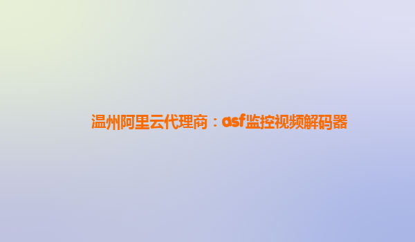 温州阿里云代理商:ASF监控视频解码器 阿里云是国内领先的云计算服务提供商,为企业和个人提供包括计算、存储、数据库、安全等一系列云服务。作为温州地区的阿里云代理商,我们向您介绍ASF监控视频解码器,结合阿
