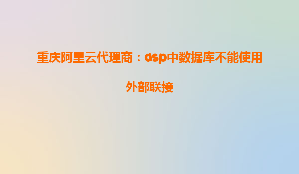 重庆阿里云代理商:ASP中数据库不能使用外部联接问题分析与阿里云优势 在开发基于ASP(ActiveServerPages)技术的Web应用时,开发者常常需要与数据库进行交互以完成数据的增删改查操作。然而,在使用ASP与某些数