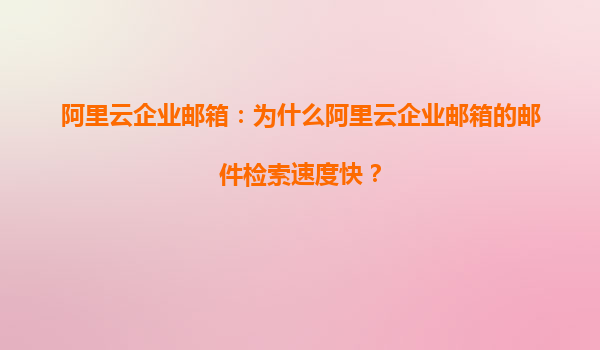 阿里云企业邮箱:为什么阿里云企业邮箱的邮件检索速度快? 引言 随着企业信息化程度的提高,电子邮件已成为日常工作中不可或缺的沟通工具。对于企业而言,高效、稳定且安全的邮箱服务至关重要。阿