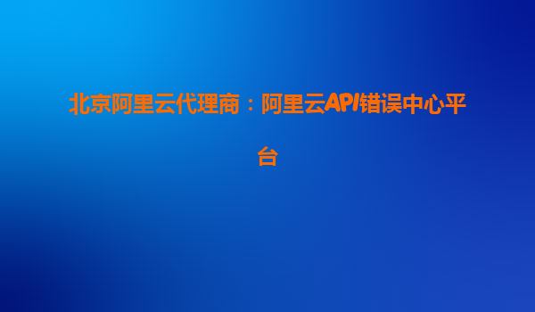 北京阿里云代理商:阿里云API错误中心平台的优势与应用 一、阿里云API错误中心平台的概述 阿里云API错误中心平台是阿里云为开发者提供的一项重要服务,旨在帮助用户快速定位和解决在使用阿里云API过程中可能遇到的