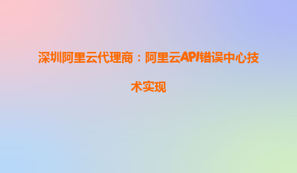深圳阿里云代理商:阿里云API错误中心技术实现 引言 在云计算领域,阿里云作为全球领先的云服务提供商,其API接口的稳定性和错误处理能力直接影响开发者的使用体验。本文将通过深圳阿里