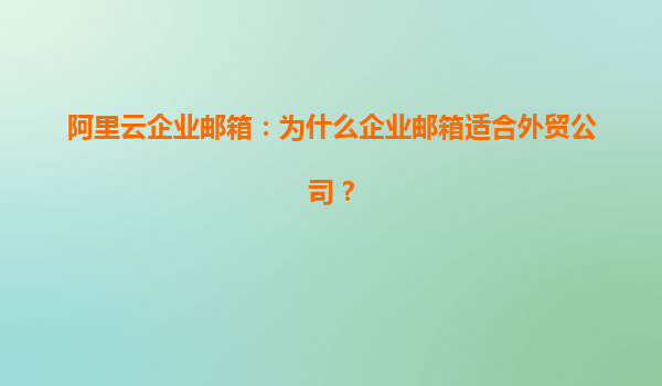 阿里云企业邮箱:为什么适合外贸公司 在全球化经济的大背景下,外贸公司面临着激烈的国际竞争。有效的沟通工具不仅能提高工作效率,还能增强企业的专业形象。阿里云企业邮箱以其稳定性、安全性和高效性,成为外