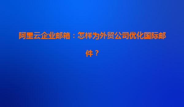 阿里云企业邮箱:如何为外贸公司优化国际邮件 在当今的全球化市场中,外贸公司需要与世界各地的客户和合作伙伴进行频繁的沟通。高效、安全且可靠的邮件系统对于外贸公司的日常运营至关重要。阿里云企业邮箱,作为一