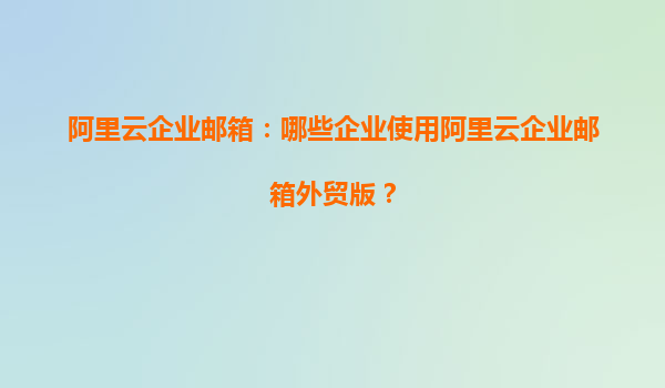 阿里云企业邮箱外贸版:助力企业全球化沟通的优选方案 一、哪些企业在使用阿里云企业邮箱外贸版? 阿里云企业邮箱外贸版因其强大的国际化功能和稳定的服务性能,成为众多外贸企业的首选。主要用户群体