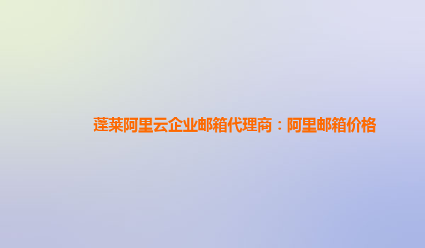 蓬莱阿里云企业邮箱代理商:阿里云服务器搭建教程 阿里云企业邮箱是一款专为企业用户打造的云端邮件解决方案,拥有稳定的服务器以及强大的安全性保障,能够满足企业对于邮件传输和存储的需求。 阿里云企业邮箱代理