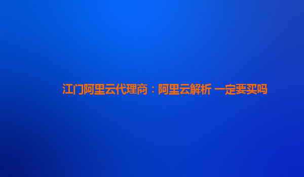 江门阿里云代理商:阿里云解析一定要买吗 阿里云作为全球领先的云计算服务提供商,其解析服务是互联网企业和个人用户非常重要的一项基础服务。但是,作为江门地区的阿里云代理商,我们必须明确告诉大家,阿里云