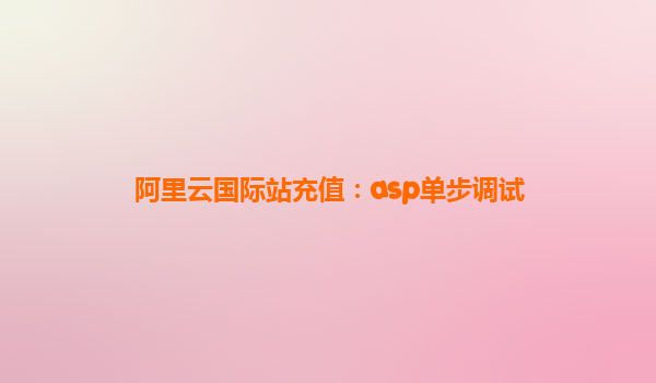 • 阿里云国际站充值:ASP单步调试全解析 一、标题核心内容拆解 本标题包含三个关键信息点: 阿里云国际站-面向全球用户的云计算服务平台 充值服务-资金账户管理核心功能 ASP单步调试-针