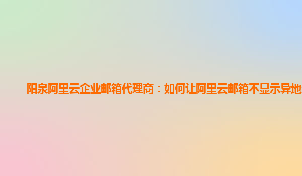 阳泉阿里云企业邮箱代理商:如何让阿里云邮箱不显示异地登录 阿里云企业邮箱优势 阿里云企业邮箱是一款功能强大、稳定可靠的企业邮箱服务,通过阿里云企业邮箱,用户可以轻松管理邮件、日程和联系人,