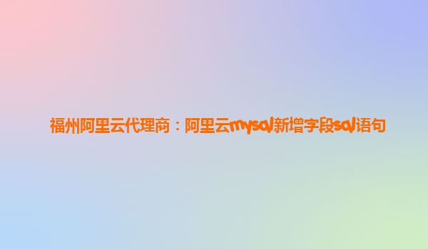 福州阿里云代理商:阿里云mysql新增字段sql语句 作为福州地区的阿里云代理商,我们了解阿里云产品的优势和特点。阿里云作为国内领先的云计算服务提供商,拥有稳定可靠的数据库服务,其中包括MySQL数据库。