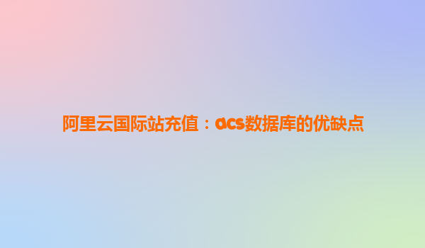 阿里云国际站充值:ACS数据库的优缺点 随着云计算的不断发展,各种云服务的选择日益增多。在这其中,阿里云提供的云数据库服务因其可靠性、性能、灵活性等优势,受到了越来越多企业的青睐。阿里云的数据库服务,包