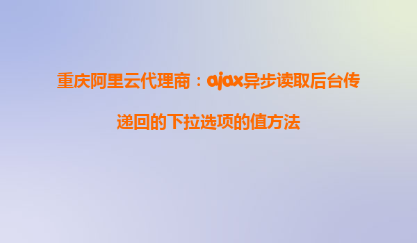 重庆阿里云代理商:Ajax异步读取后台传递回的下拉选项的值方法 随着信息化时代的到来,越来越多的企业选择通过阿里云的技术架构来优化他们的系统和应用。对于网站开发而言,前端和后端的交互是实现动态效果的核心。
