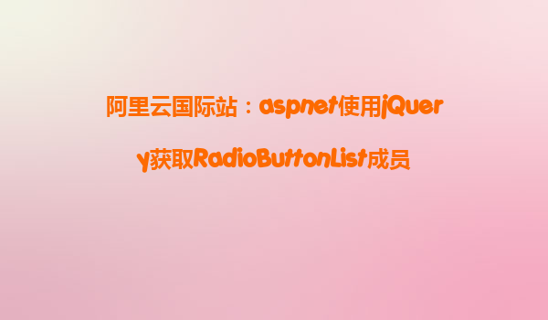 阿里云国际站:ASP.NET使用jQuery获取RadioButtonList成员选中内容和值示例 在ASP.NET中,RadioButtonList控件是一种常见的用于显示单选按钮的控件,它可以让用户从一组选项中选择一个。在Web开发中,我们经常需要
