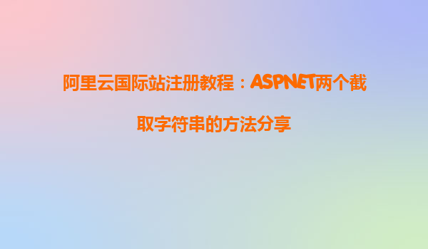 阿里云国际站注册教程:ASP.NET两个截取字符串的方法分享 随着互联网技术的不断发展,越来越多的企业和个人开始使用云服务平台来提高工作效率、降低成本、加速应用的部署。阿里云作为国内领先的云计算服务提供商,