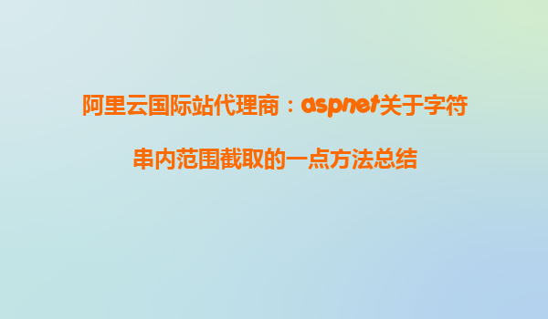 阿里云国际站代理商:ASP.NET关于字符串内范围截取的一点方法总结 在Web开发过程中,字符串操作是不可避免的,尤其是在处理用户输入、数据解析等场景下,常常需要截取字符串的某一部分。在ASP.NET开发中,字符串截