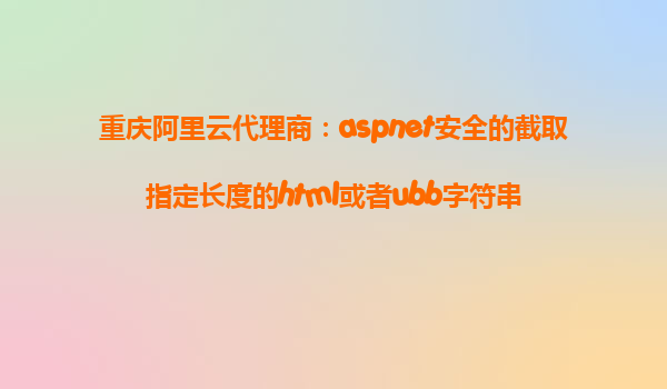 重庆阿里云代理商:ASP.NET安全的截取指定长度的HTML或者UBB字符串 随着互联网技术的不断发展,网络安全问题逐渐成为每个开发者、公司和机构关注的焦点。尤其是在ASP.NET平台上,如何确保安全性,避免恶意攻击和数