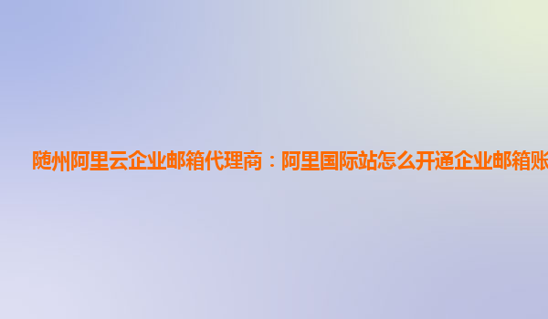 随州阿里云企业邮箱代理商:阿里国际站怎么开通企业邮箱账号登录 随州阿里云企业邮箱代理商为您提供便捷的企业邮箱服务,让您的邮件管理更加高效和安全。在阿里云企业邮箱平台上,您可以轻松地创