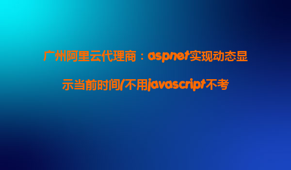 广州阿里云代理商:ASP.NET实现动态显示当前时间(不使用JavaScript,不考虑开销) 一、阿里云优势概述 作为全球领先的云计算和人工智能技术提供商,阿里云在中国市场的领导地位不断巩固,广泛服务于各行各