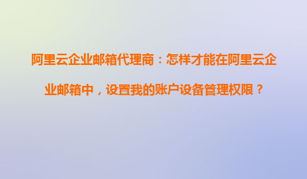 阿里云企业邮箱代理商指南:如何设置账户设备管理权限 阿里云企业邮箱作为企业级邮箱服务的标杆,不仅提供高效稳定的邮件服务,还具备强大的账户安全管理功能。本文将详细介绍如何在阿里云企业邮箱中设置账户设