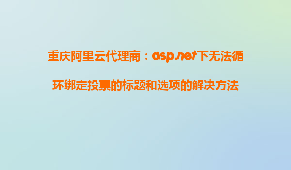 解决ASP.NET下无法循环绑定投票的标题和选项问题的办法 在ASP.NET开发中,遇到无法循环绑定投票标题和选项的问题时,不仅会影响程序的运行效率,还会影响用户体验。尤其是在使用阿里云进行部署时,这个问题尤为