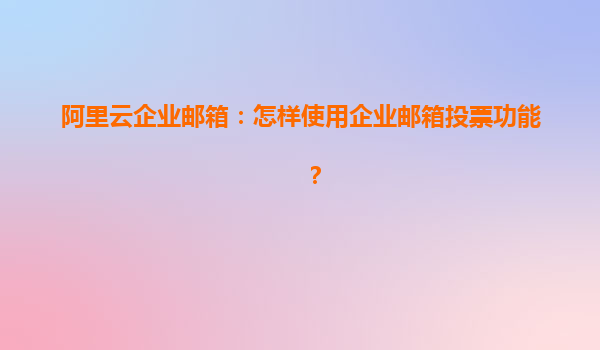 阿里云企业邮箱:怎样使用企业邮箱投票? 一、阿里云企业邮箱的优势 在当今数字化办公环境中,企业邮箱不仅仅是沟通工具,更成为提升协作效率的重要平台。阿里云企业邮箱凭借其稳定、安