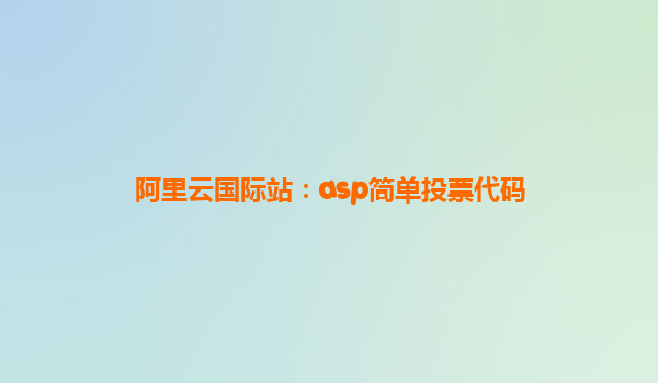 阿里云国际站:ASP简单投票代码的部署与优势解析 一、标题内容深度解析 标题“阿里云国际站:ASP简单投票代码”包含以下关键信息点: 平台背景:强调阿里云国际站,表明解决方案基于