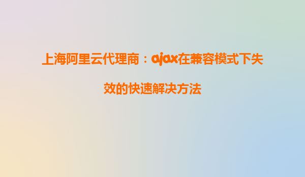 上海阿里云代理商:Ajax在兼容模式下失效的快速解决方法 问题背景:兼容模式下的Ajax失效痛点 作为上海阿里云代理商,我们在服务企业客户时经常遇到这样的技术难题:使用Ajax技术开发的