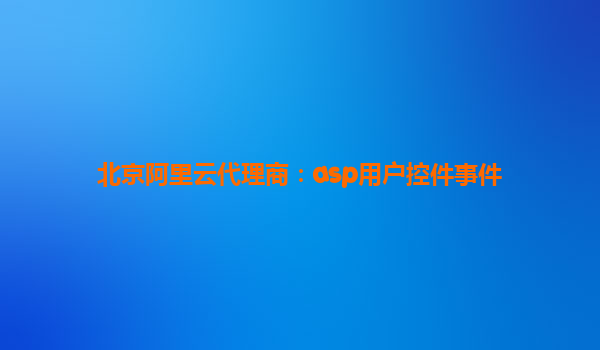 • 北京阿里云代理商:ASP用户控件事件与阿里云服务的完美结合 一、ASP用户控件事件概述 ASP用户控件事件是ASP.NET开发中的重要组成部分,它允许开发者通过事件驱动的方式实现模块化开发。用户控