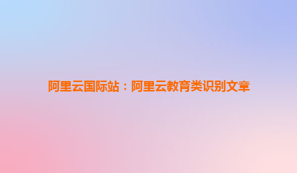 阿里云国际站:阿里云教育类识别文章 引言 在当今快速发展的数字化时代,教育领域对信息技术的依赖日益增加,尤其是云计算技术的应用为教育行业带来了巨大的变革。阿里云作为全球领先的云计算和大数据平台,凭借其