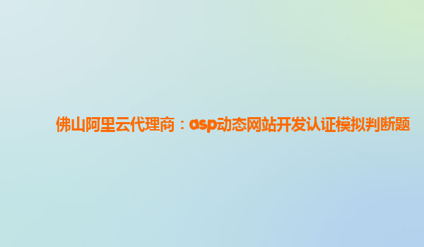佛山阿里云代理商:ASP动态网站开发认证模拟判断题 在当今数字化时代,网站已经成为企业宣传和销售的主要渠道之一。而ASP动态网站开发作为一种成熟而强大的网站开发技术,越来越受到企业和开发者的青睐。在这样的背