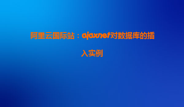 阿里云国际站:Ajaxnet数据库插入实例 随着互联网的快速发展,企业对于数据存储和处理的需求越来越高。尤其是在全球化的商业背景下,越来越多的企业选择使用云计算服务来满足他们的数据需求。作为全球领先的云计算