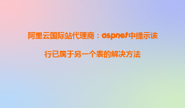 • 阿里云国际站代理商:ASP.NET中提示“该行已属于另一个表”的解决方法 在使用ASP.NET开发过程中,很多开发者可能会遇到“该行已属于另一个表”这一错误提示。这一问题通常发生在数据库操作时,尤其是在处