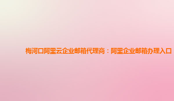梅河口阿里云企业邮箱代理商:阿里企业邮箱办理入口 梅河口阿里云企业邮箱代理商 阿里企业邮箱是一款由阿里云推出的企业级邮箱服务,梅河口地区提供此服务的代理商方便用户进行办理和管理。 阿里企业邮箱办理入口