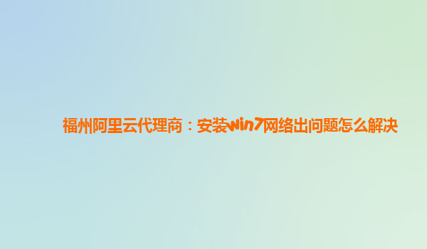 福州阿里云代理商:安装Win7网络出问题怎么解决 在福州选择阿里云代理商进行Windows7系统安装时,可能会遇到网络问题。本文将结合阿里云的优势,详细分析和解决安装Win7过程中网络出问题的情况。 阿