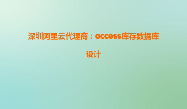 深圳阿里云代理商:Access库存数据库设计 在现代企业管理中,库存管理作为企业资源管理的重要一环,直接关系到公司的资金流转、生产效率以及客户满意度。阿里云作为国内领先的云计算服务提供商,其强大的云计算资源