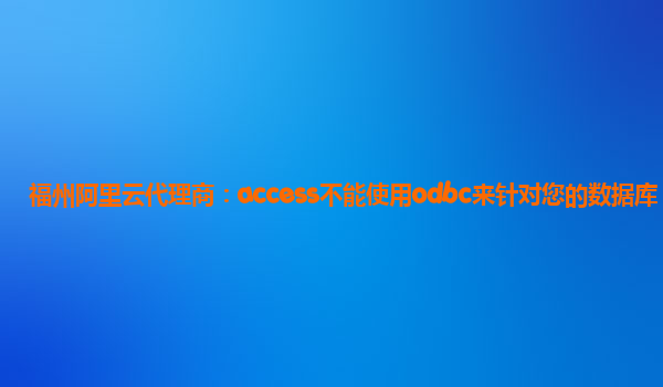 福州阿里云代理商:access不能使用odbc来针对您的数据库 阿里云优势 作为中国领先的云计算服务提供商,阿里云拥有世界级的基础设施和技术支持团队,为客户提供稳定、高效、安全的云计算服务。 不得不面对的问题 在