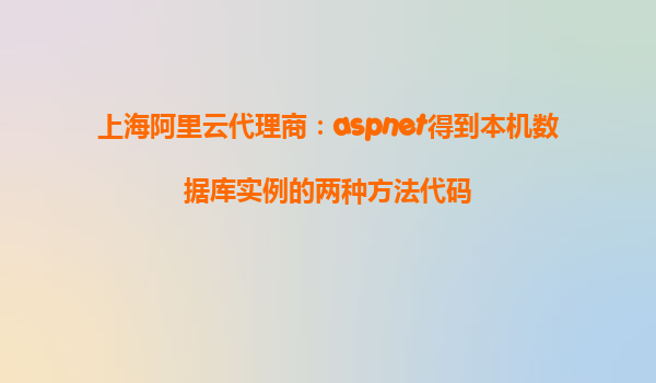上海阿里云代理商:ASP.NET得到本机数据库实例的两种方法代码 在使用ASP.NET进行开发时,获取本机数据库实例是一个常见的需求,尤其是在本地开发环境和部署到阿里云上的过渡过程中。本文将介绍两种常见的方法来获取