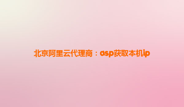 北京阿里云代理商:ASP获取本机IP及阿里云优势解析 一、ASP获取本机IP的方法与应用场景 在Web开发中,ASP(ActiveServerPages)是一种常用的服务器端脚本环境。通过ASP获取本机IP地址是实现用户