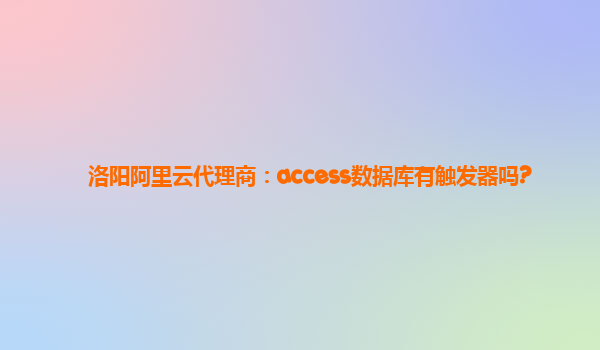 Access数据库是否有触发器? 作为洛阳阿里云代理商,我们经常遇到客户对Access数据库是否有触发器的疑问。今天,我们将会为大家详细解答 Access数据库是否有触发器? Access数据库默认并不支持触发器。触发器