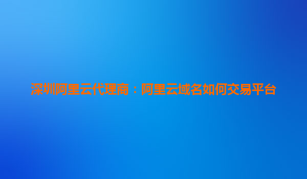 以下是以“深圳阿里云代理商:阿里云域名如何交易平台”为主题的文章,内容包含阿里云的优势,并以HTML格式输出: 深圳阿里云代理商:阿里云域名如何交易平台 随着互联网的发展,域名已成为企业和个人在