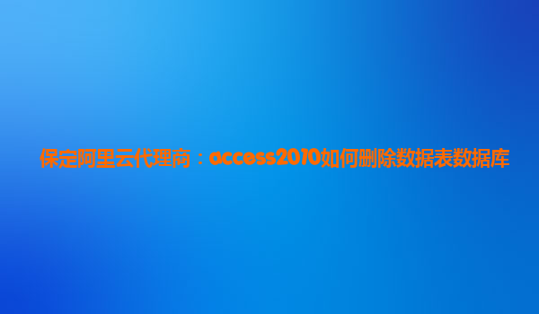 保定阿里云代理商:如何在Access2010中删除数据表及阿里云的优势 作为保定的阿里云代理商,我们不仅专注于为本地企业和个人用户提供阿里云的相关服务,还为用户提供诸如数据库管理等技术指导。本文将介绍如何在