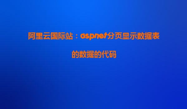 使用阿里云国际站和ASP.NET实现分页显示数据表数据的代码 随着信息技术的迅速发展,企业和个人对数据的管理和展示需求日益增多。特别是在网页开发中,数据展示与分页已经成为了基础功能之一。在这篇文章中,我们