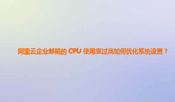 阿里云企业邮箱的CPU使用率过高如何优化系统设置? 随着企业对数字化转型的推动,越来越多的公司选择使用阿里云企业邮箱这一工具来提升工作效率和沟通便捷性。然而,在实际使用过程中,一些企业可能会遇到阿里