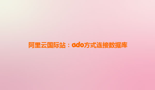 • 阿里云国际站ADO方式连接数据库指南 随着云计算技术的不断发展,越来越多的企业开始选择将他们的业务迁移到云端。在这个过程中,阿里云作为全球领先的云服务提供商,凭借其稳定、高效、易用的云平台,赢得了大量用